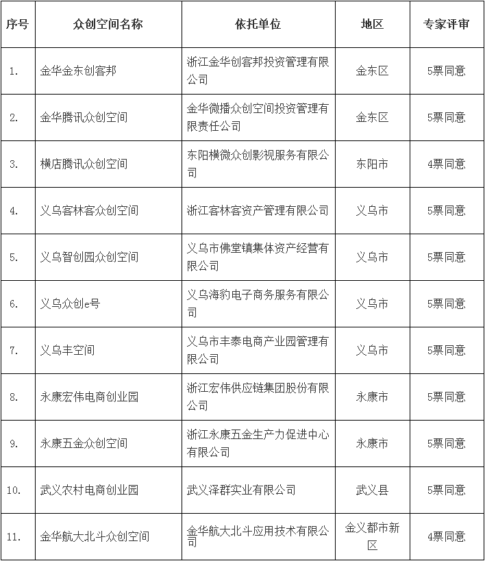 2018年第一批金華市級(jí)眾創(chuàng)空間名單