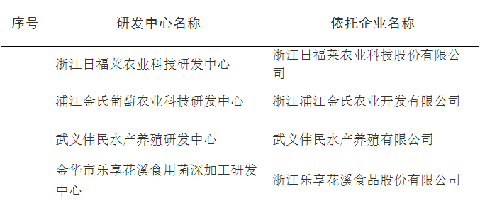 根據(jù)《關(guān)于深入實(shí)施創(chuàng)新驅(qū)動(dòng)發(fā)展戰(zhàn)略大力推進(jìn)大眾創(chuàng)業(yè)萬(wàn)眾創(chuàng)新的若干意見》(金政發(fā)〔2016〕14號(hào))和《金華市農(nóng)業(yè)科技研究開發(fā)中心管理辦法》(金市科〔2009〕24號(hào))等文件精神,在各縣(市、區(qū))科技局推薦的基礎(chǔ)上,通過初審、實(shí)地核查、專家評(píng)審和公示等程序,經(jīng)研究,認(rèn)定“浙江日福萊農(nóng)業(yè)科技股份有限公司”等4家企業(yè)組建的研發(fā)中心為金華市農(nóng)業(yè)科技研究開發(fā)中心,現(xiàn)予公布。