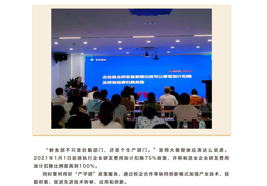 為進一步加強企業(yè)研發(fā)項目登記管理,幫助企業(yè)掌握自主研發(fā)立項的思路、方法和系統(tǒng)操作,引導創(chuàng)新主體加大R&D研發(fā)投入,解讀企業(yè)研發(fā)經費加計扣除等科技政策。6月21日,在市科技局的指導下,市人才科創(chuàng)中心聯(lián)合婺城區(qū)和蘭溪市,組織2021年企業(yè)自主研發(fā)立項線上線下專場培訓會在浙中科技大市場暨“揭榜掛帥”服務中心順利召開。此次參加線上、線下培訓人員共計160人左右。浙中科技大市場和金華市高新技術企業(yè)協(xié)會具體承辦。