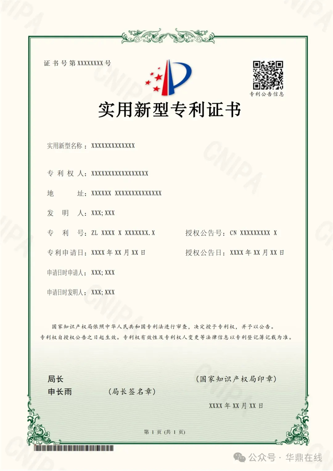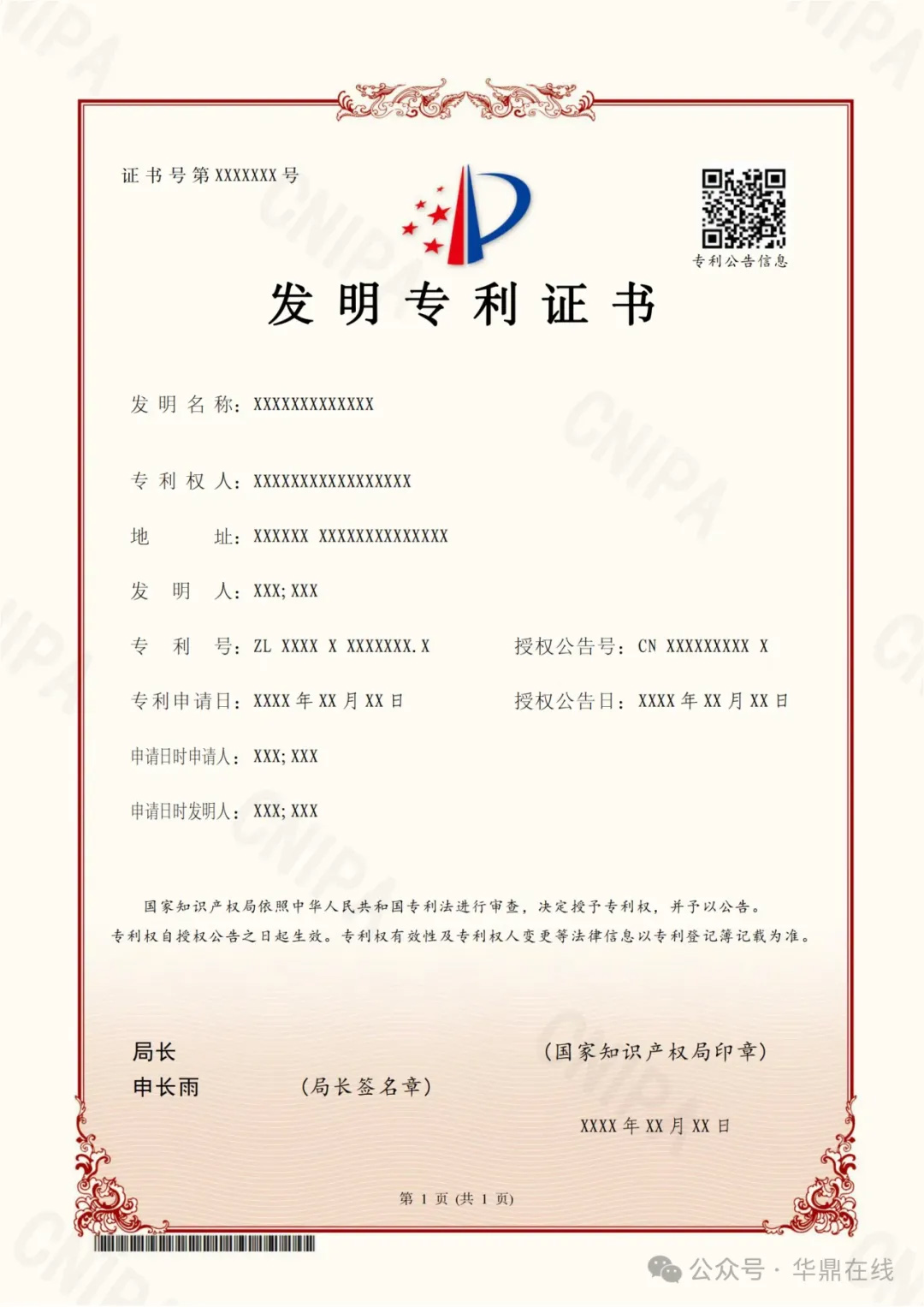 對于授權(quán)公告日在2024年6月1日之后(含當(dāng)日)的專利,國家知識產(chǎn)權(quán)局頒發(fā)新版專利證書。新版專利證書沿用A4規(guī)格豎排版式,優(yōu)化調(diào)整著錄事項(xiàng)布局。